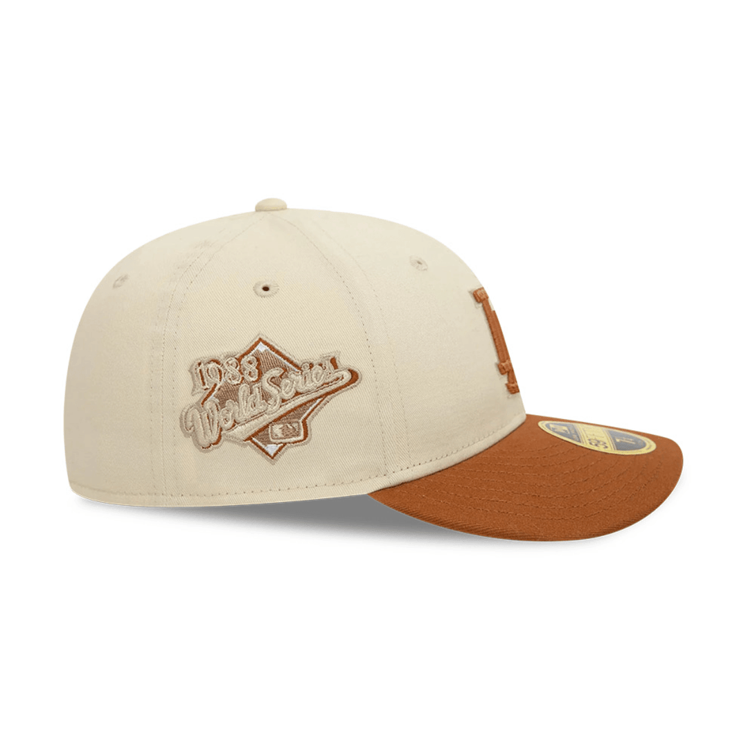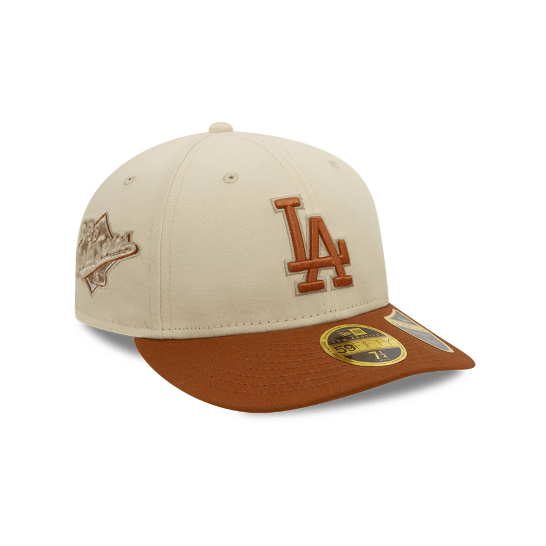Esta gorra New Era 59FIFTY LP de Los Angeles Dodgers de la colección Seasonal World Series, presenta un color beige y la visera camel, el logotipo del equipo bordado en los paneles frontales, un parche alusivo al World Series bordado en el lado derecho, el Batterman al reverso, y el flag de New Era bordado en el lado izquierdo.