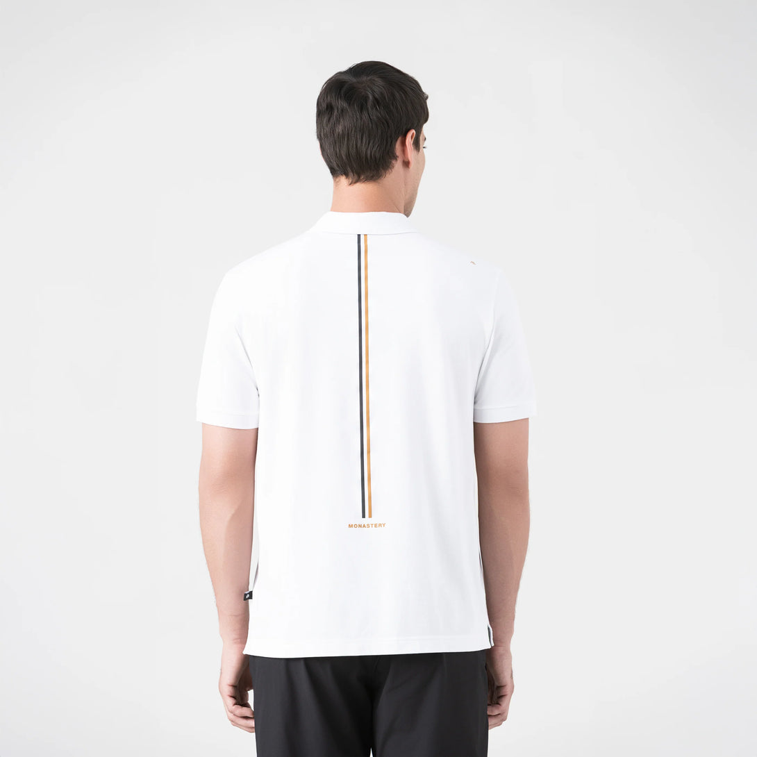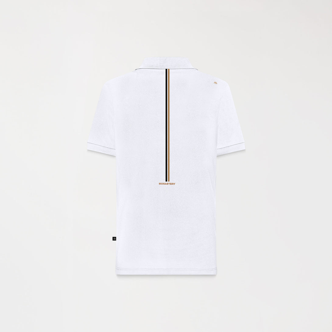 Brunello es una polo masculina confeccionada en algodón 100% pima peruano exclusivo para Monastery, reconocida por su suavidad y durabilidad. Su silueta regular encuentra el equilibrio entre comodidad y estructura, mientras que el cuello rectilíneo y los puños tejidos refuerzan la sofisticación del diseño. Al frente, un aplique con el logo Monastery aporta un punto focal distintivo acompañado de botones contramarcados que reflejan atención al detalle. En la espalda, un estampado plano sutil realza su carácter auténtico y refinado. Una prenda diseñada para elevar lo casual con naturalidad y elegancia atemporal.