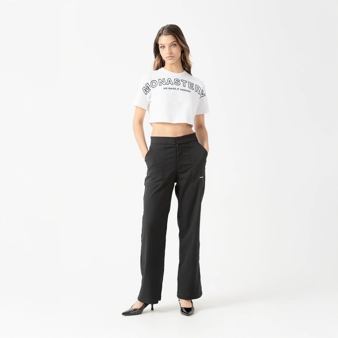 Pantalón femenino de silueta bota ancha, diseñado para ofrecer un equilibrio entre estilo y comodidad.