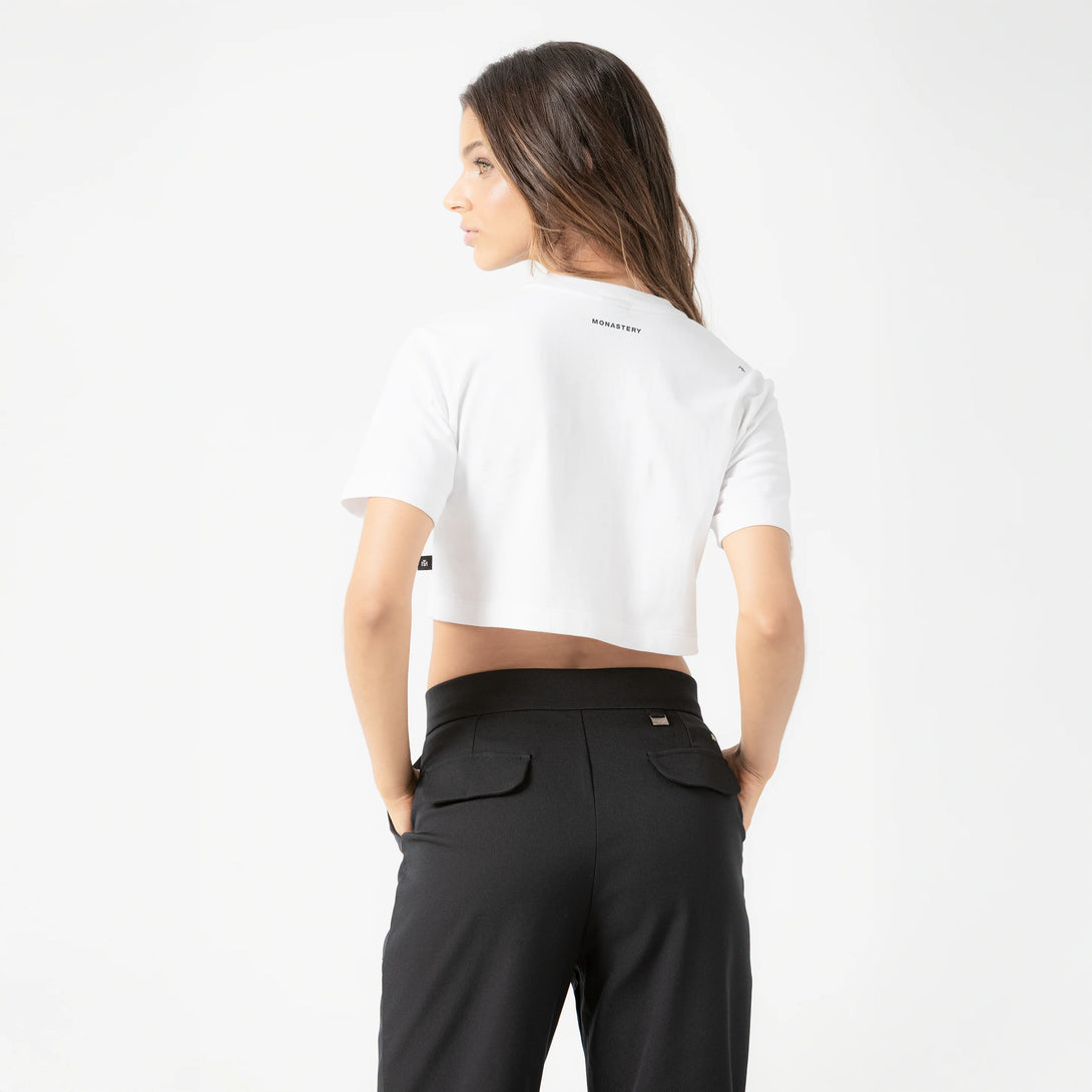 En la parte posterior, incorpora un aplique metálico con el nombre de la marca, estratégicamente ubicado para reforzar la identidad de Monastery.