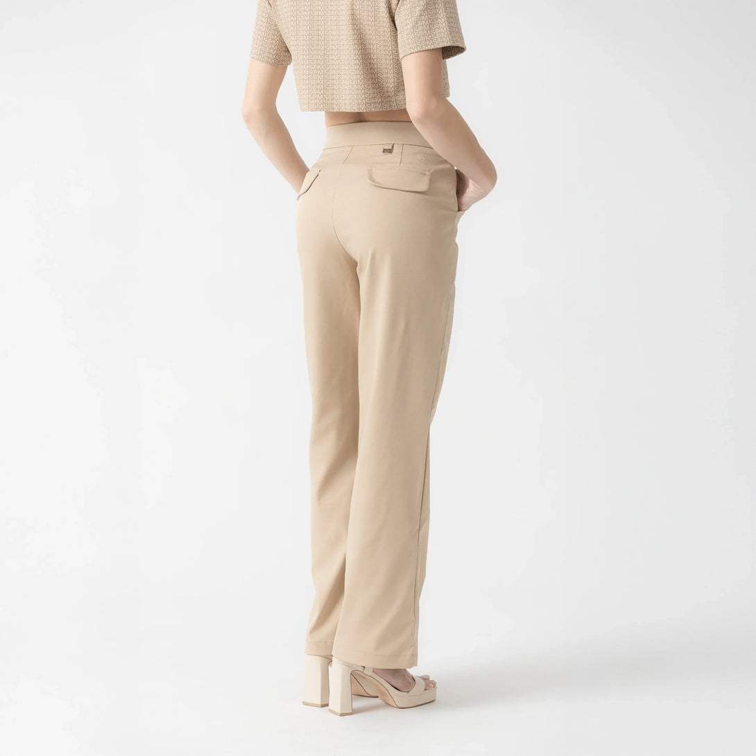 Pantalón femenino de silueta bota ancha, diseñado para ofrecer un equilibrio entre estilo y comodidad.