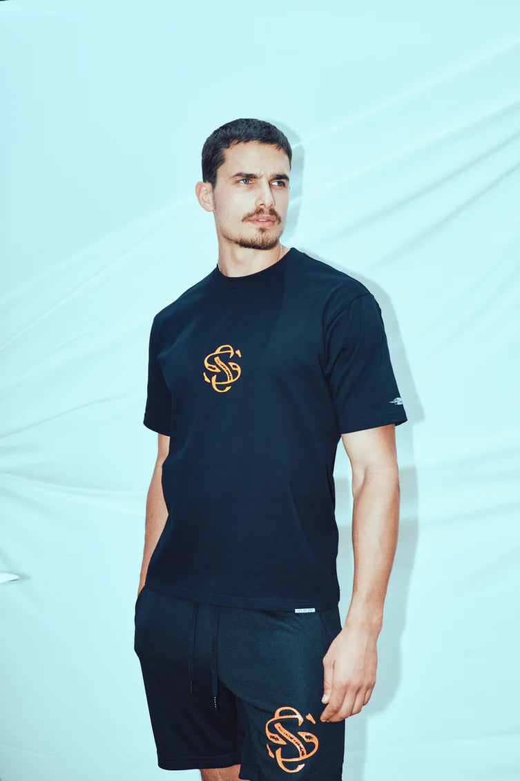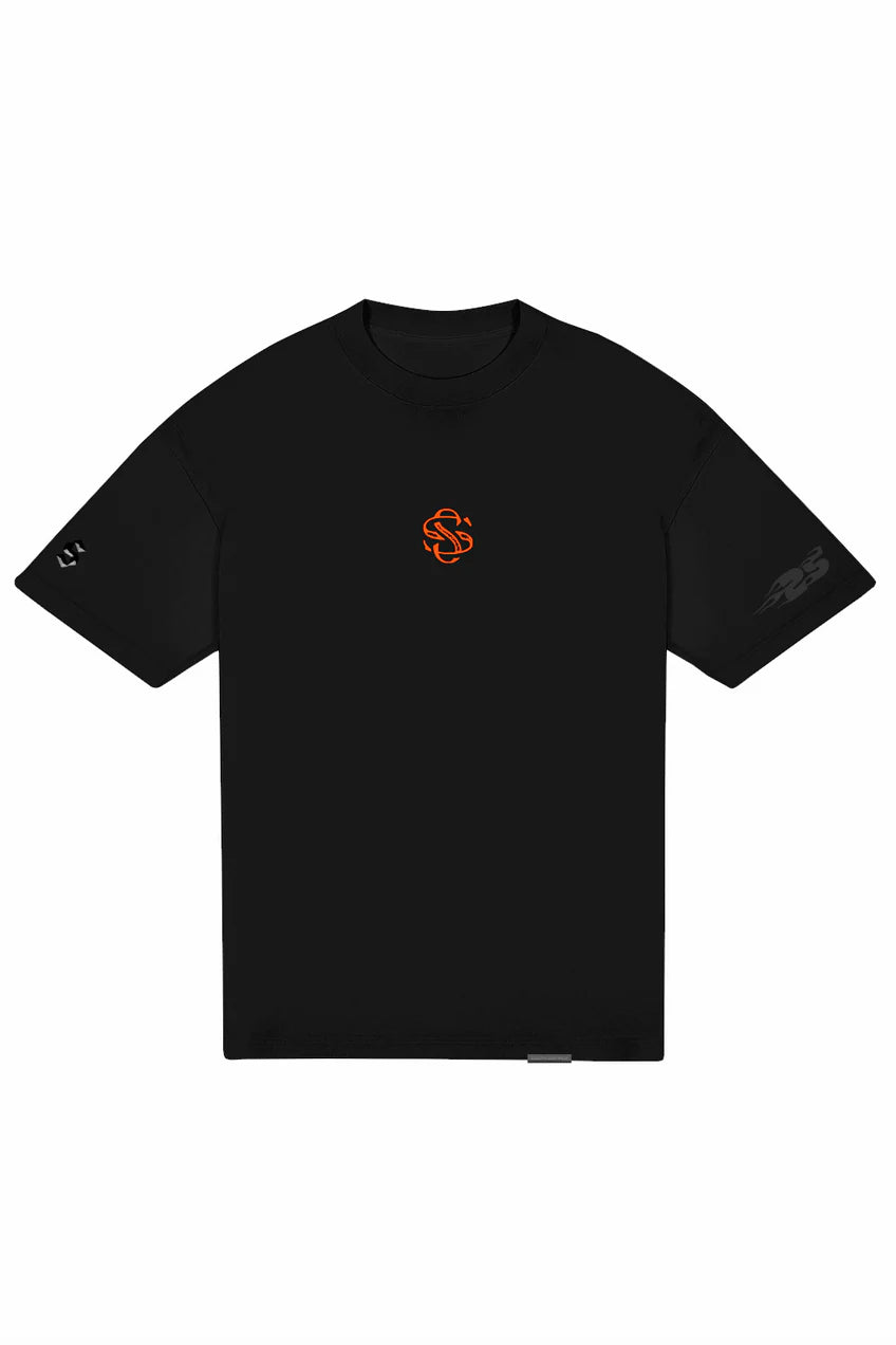 Confeccionada en algodón premium de 280 gramos, combina estructura y resistencia con un fit oversize urbano. Su diseño gráfico en estampado naranja contrasta con la sobriedad del negro, creando una pieza con carácter fuerte y auténtico. Perfecta para llevar en bajo contraste con nuestras pantalonetas negras SON OF TWO TIMES, reforzando la estética streetwear con raíz motera.