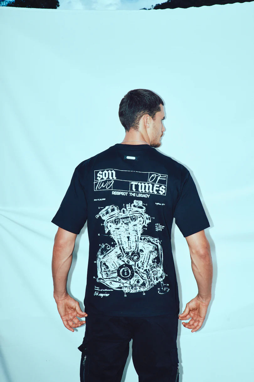 Los motores representan la esencia de nuestro legado: son la fuerza que nos impulsa hasta la línea final, el símbolo del esfuerzo y la lucha por alcanzar lo que soñamos. Esta camiseta es un tributo a esa herencia motera que define la identidad de Son of Son.
