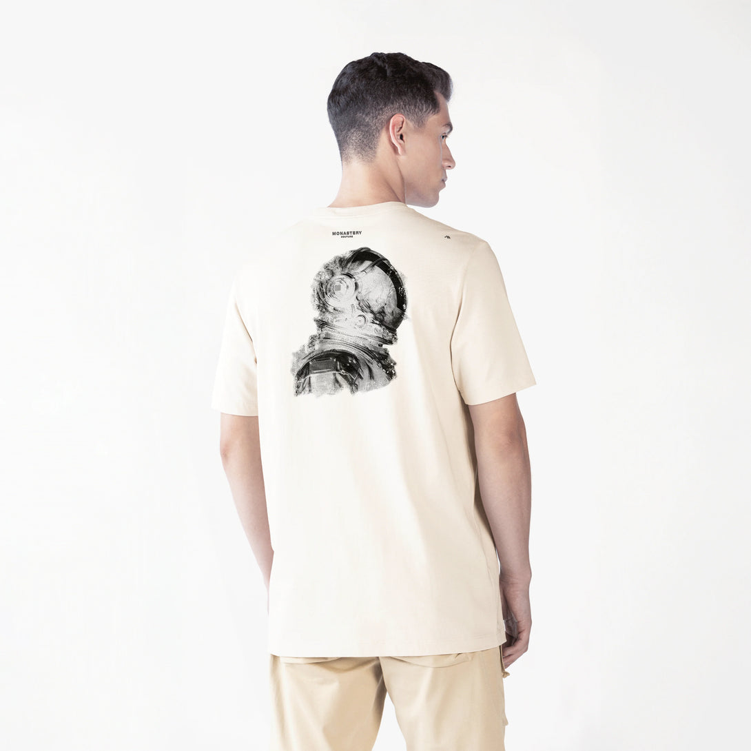 En la parte posterior, se despliega un gran estampado plano textil que presenta una ilustración impactante de nuestro astronauta, conocido como "phillip". Este diseño, de gran tamaño y detalles bien definidos, crea un efecto visual impresionante, transformando la camiseta en una pieza central de cualquier outfit. La camiseta está confeccionada en 100% algodón, lo que garantiza una sensación suave y cómoda al contacto con la piel.
