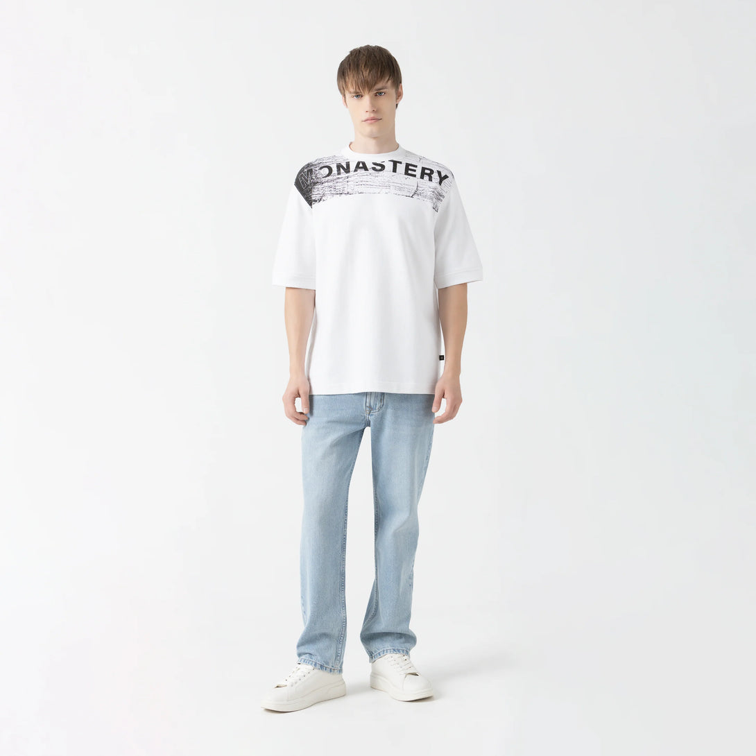 La Gibbon es una t-shirt de silueta oversized, elaborada en tela Monastery 2, un algodón de alta calidad que combina suavidad, estructura y caída fluida.