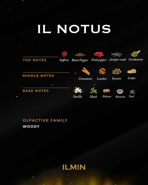 En las alturas de un paraje invernal y misterioso surge IL NOTUS, con su color y formas discretas entrega a una fragancia cálida que infunde vida y alegría. Il Notus combina el abrazo cálido de la vainilla con el misterio del oud, y notas como viento que sopla llevando las notas dulces de este mágico aroma por un paisaje de momentos amaderados y frescos que invita a descubrirlo.