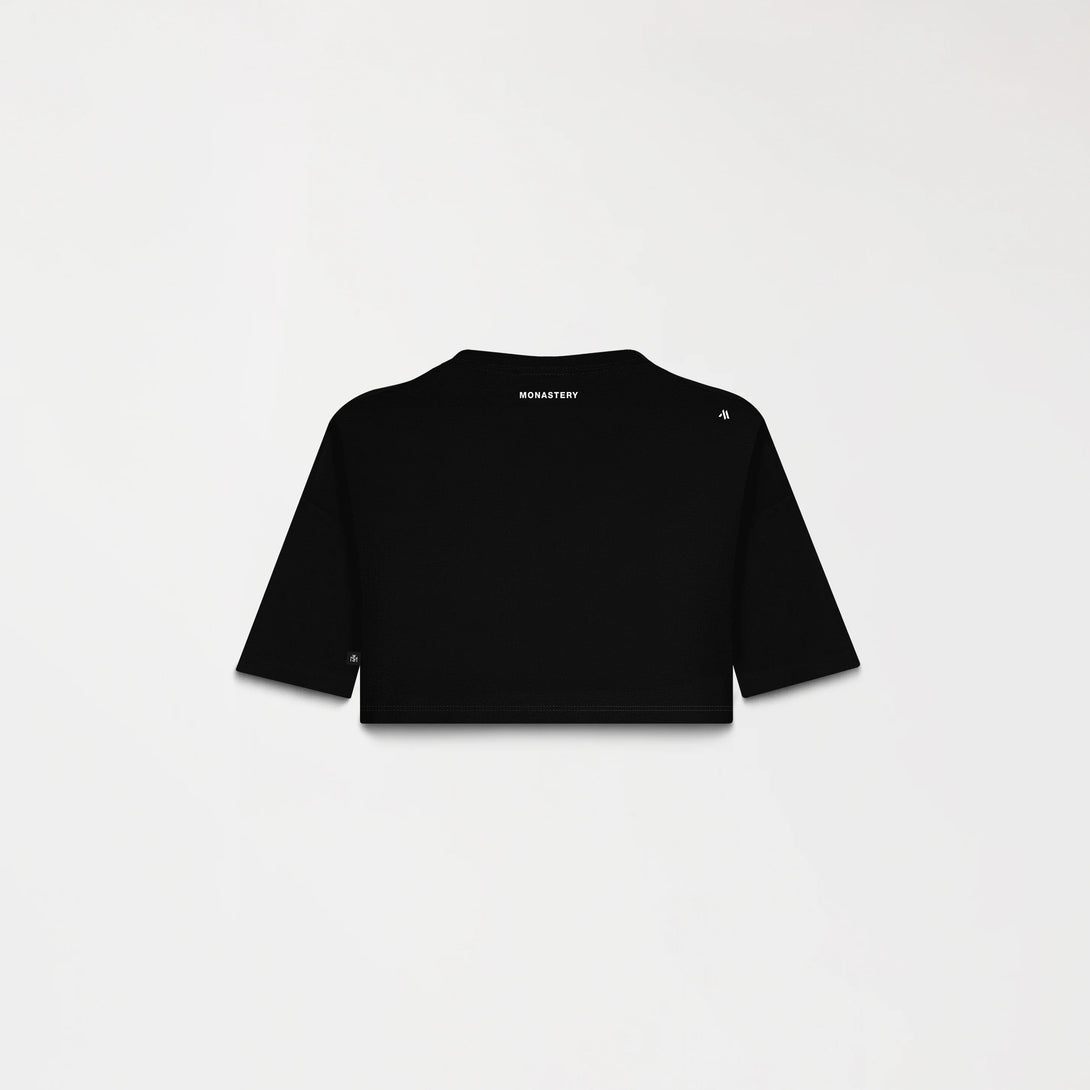 El crop top femenino Leire está confeccionado en algodón 100% exclusivo para Monastery, con una silueta pequeña que realza la figura y ofrece un ajuste cómodo y favorecedor. En el frente, destaca el logo Monastery aplicado en técnica estampado de alta densidad combinado con foil negro imitación lentejuelas, logrando un acabado vibrante y original. En la espalda, los logos insignia se presentan en estampado plano, reforzando la identidad de la marca. Perfecta para quienes buscan originalidad y calidad en su vestuario diario.