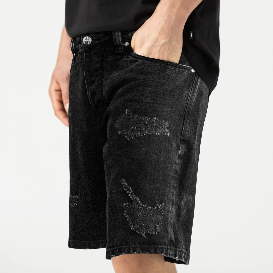 El short masculino Otterberg está confeccionado en la base textil MST Denim Anne, reconocida por su resistencia, estructura y confort. Su silueta oversized aporta un estilo urbano, relajado y contemporáneo, ideal para quienes buscan una prenda con personalidad. El tono black denim se enriquece con desgastes localizados en la parte frontal que otorgan carácter y un look auténticamente desgastado. Los insumos contramarcados en tono plata brillante suman un toque moderno y distintivo, mientras que en la parte posterior resalta una placa contramarcada con acabado negro, acompañada de una garra negra con el nombre de la marca que refuerza su identidad. Una prenda versátil con actitud, que combina innovación en la silueta con detalles de alto impacto visual.